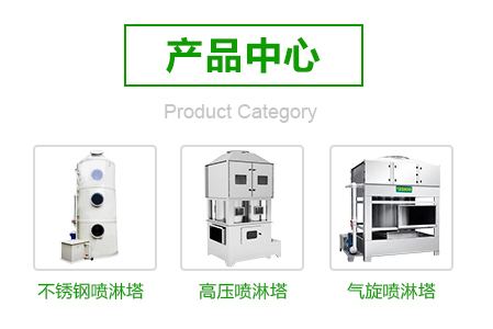 含塵含味氣體通過吸氣罩收集,在風機的作用下,經過管道輸送負壓進入雙級氣旋噴淋塔。氣旋混流裝置快速運轉,多級連續的凈化使得含塵含味氣體與水霧充份混合,在離心的作用下達到氣液分離。氣旋桶內部采用水泵循環給水,水在水箱經水泵增壓后自螺旋噴嘴霧化而出,最后回流至水箱循環使用。分離出來的雜物下沉到水箱底部,經凈化后的氣體進入填料隔水層,然后由風機排出。