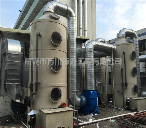 根據(jù)氨氣具有易溶于水的特點(diǎn),氨氣可以使用噴淋塔處理。氨氣廢氣從風(fēng)管進(jìn)入噴淋塔,經(jīng)過噴淋層,噴淋頭不斷的向下噴水,由下到上不間斷地噴水,氨氣的濃度越來越低,最后達(dá)標(biāo)排放,收集起來的氨水還可以重新利用。